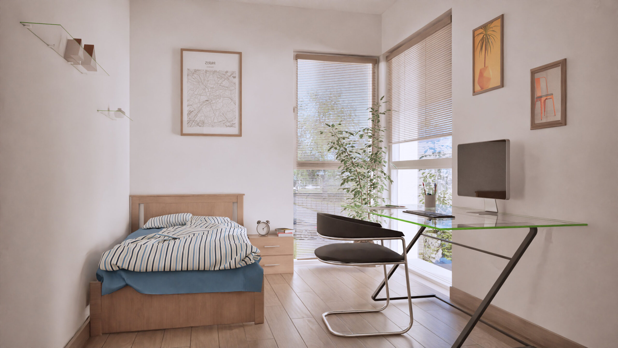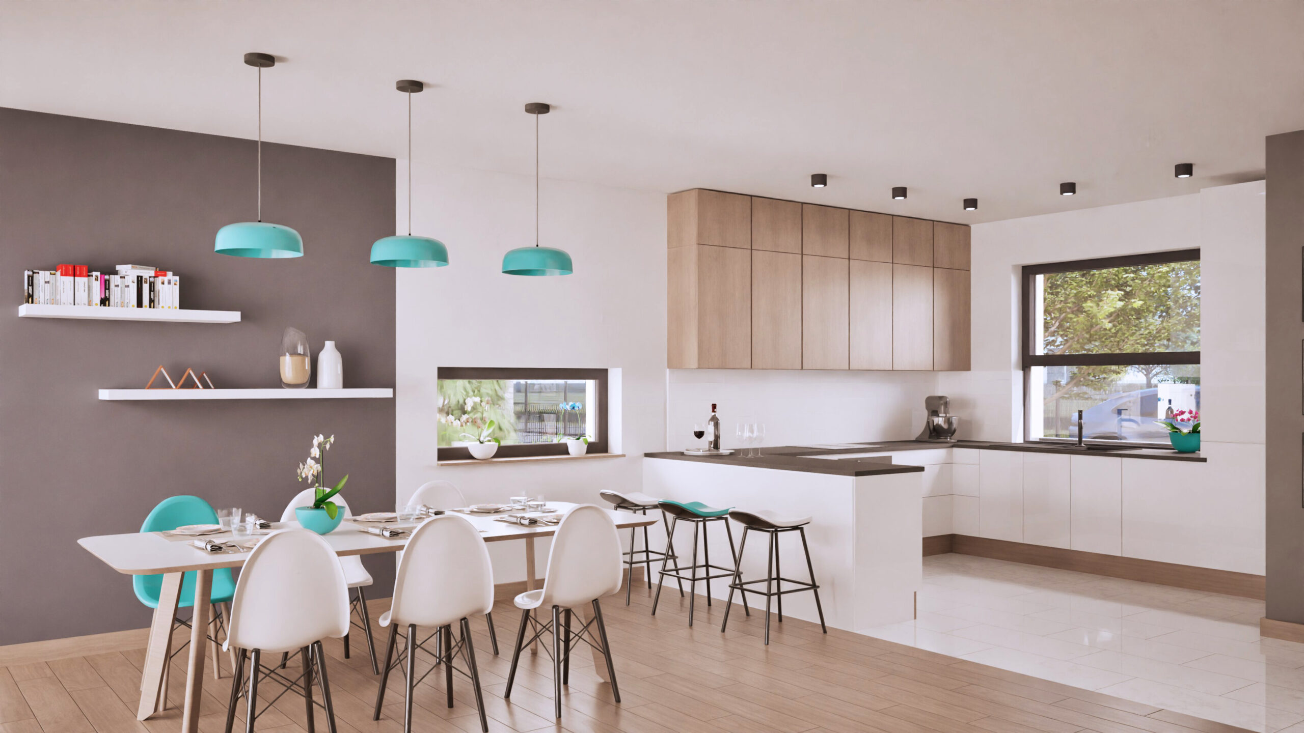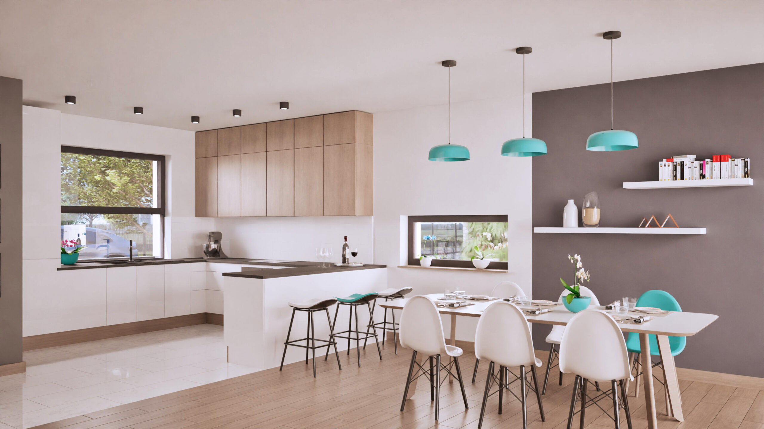 Wirtualny spacer przedstawia przykładowy projekt możliwego wykończenia lokalu i nie stanowi oferty, natomiast lokale są sprzedawane w stanie deweloperskim wg. dokumentu określającego standard lokalu.